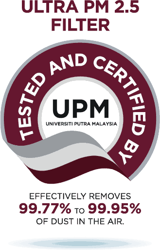 CUCKOO’s Air Purifiers also includes a self-developed filter – Ultra PM2.5 Filter, designed to effectively removes 99.77% to 99.95% of dust in the air. It is also tested and certified by University Putra Malaysia (UPM).